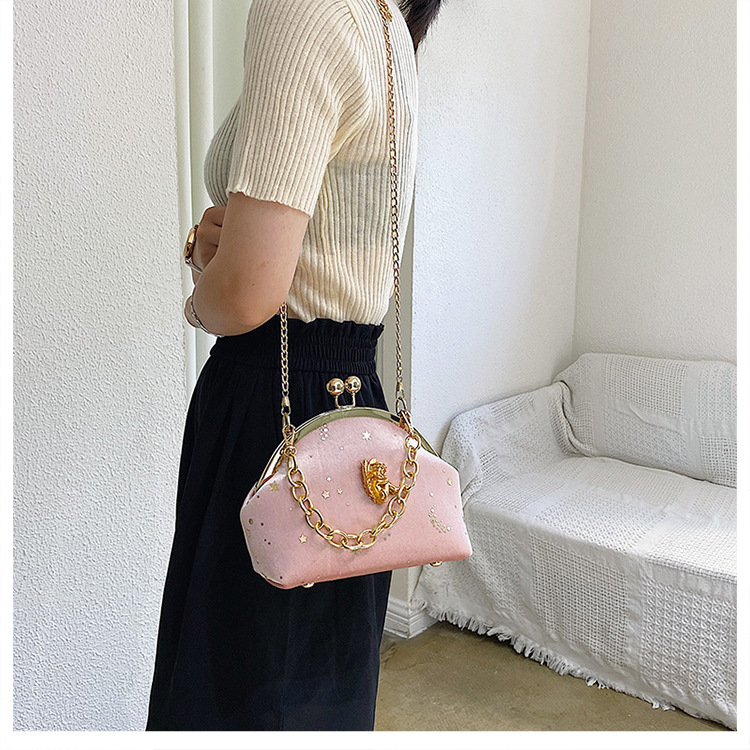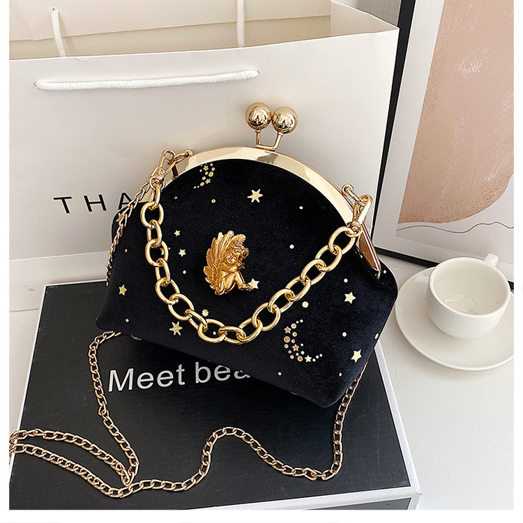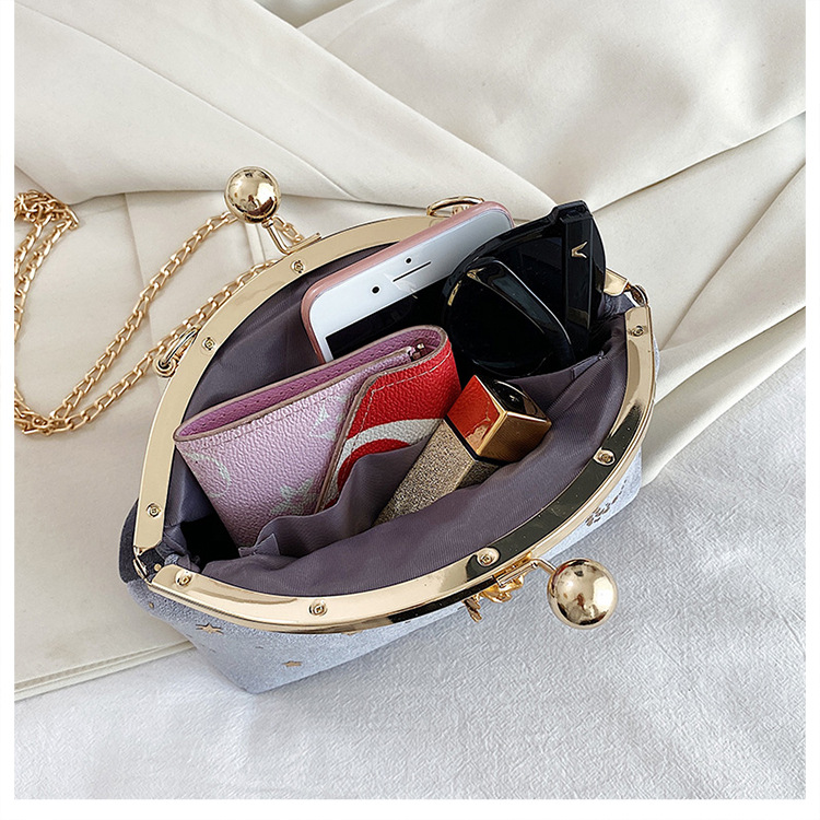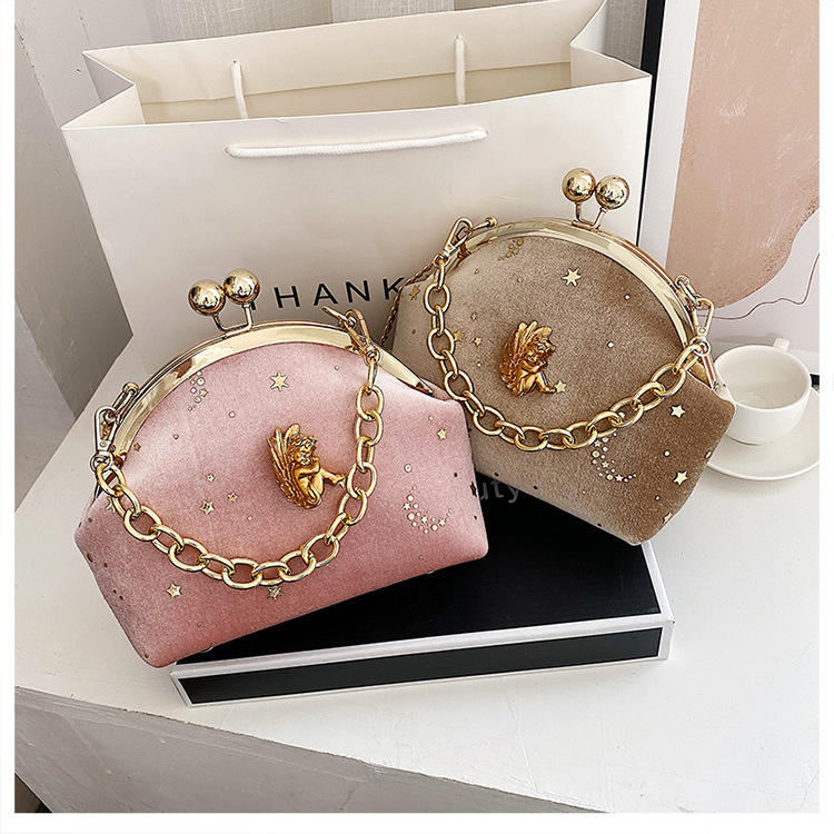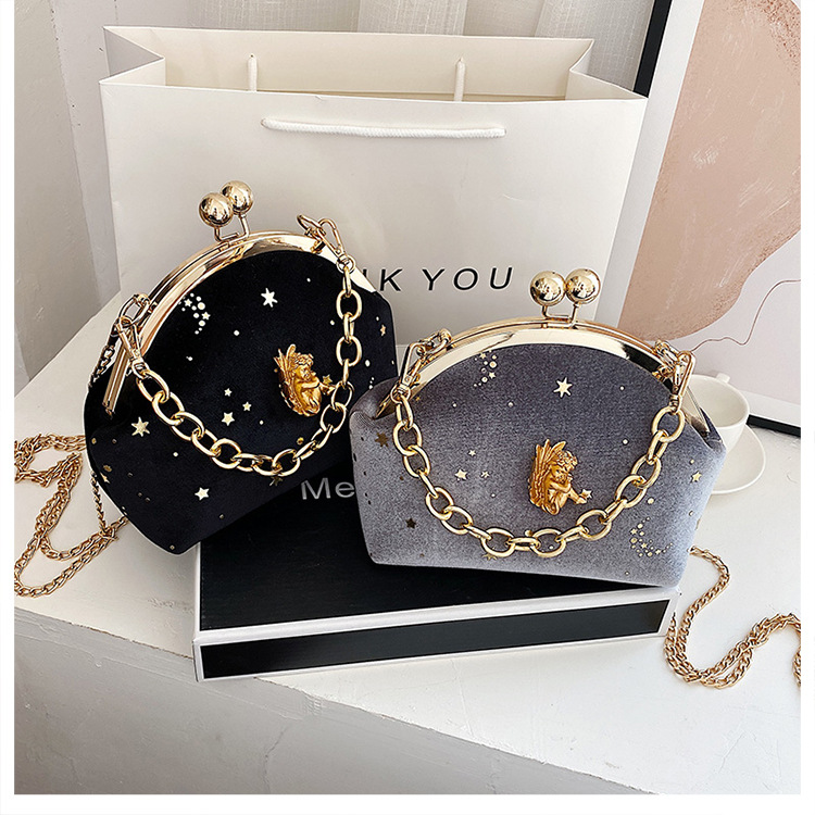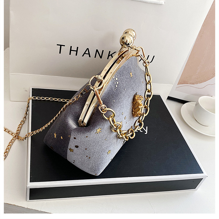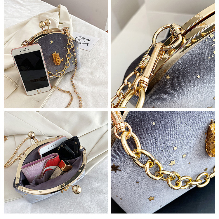 Material: golden velvet Size: Upper width: 16CM/ Lower width: 18CM Height: 6CM/ Thickness: 10CM Shoulder strap: not adjustable in length Function: single shoulder / crossbody / portable Shoulder strap length: 120CM